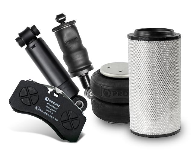 • Filtry• Brzdový systém• Díly karoserie a osvětlení• Tlumiče a díly zavěšení kol• Chladicí a klimatizační systém• Senzory• Pneumatický systém• Stěrače čelního skla• Příslušenství pro upevnění a zajištění nákladu